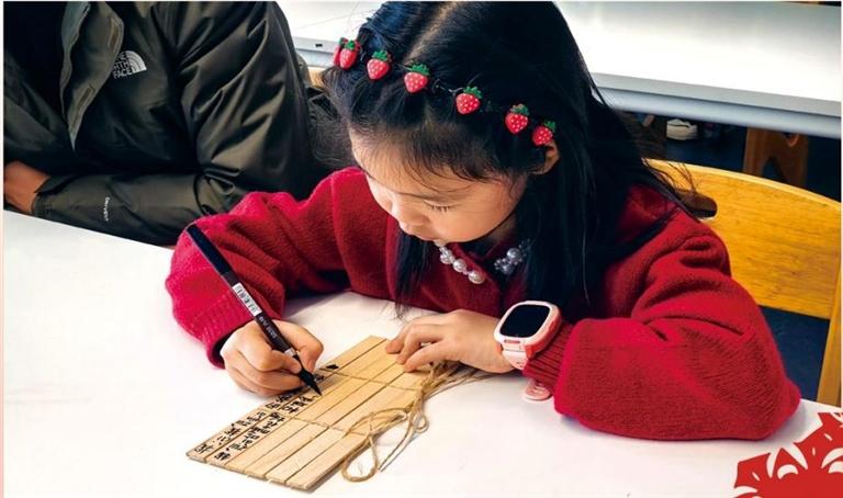 甘肃简牍博物馆内观众体验简牍编联手工