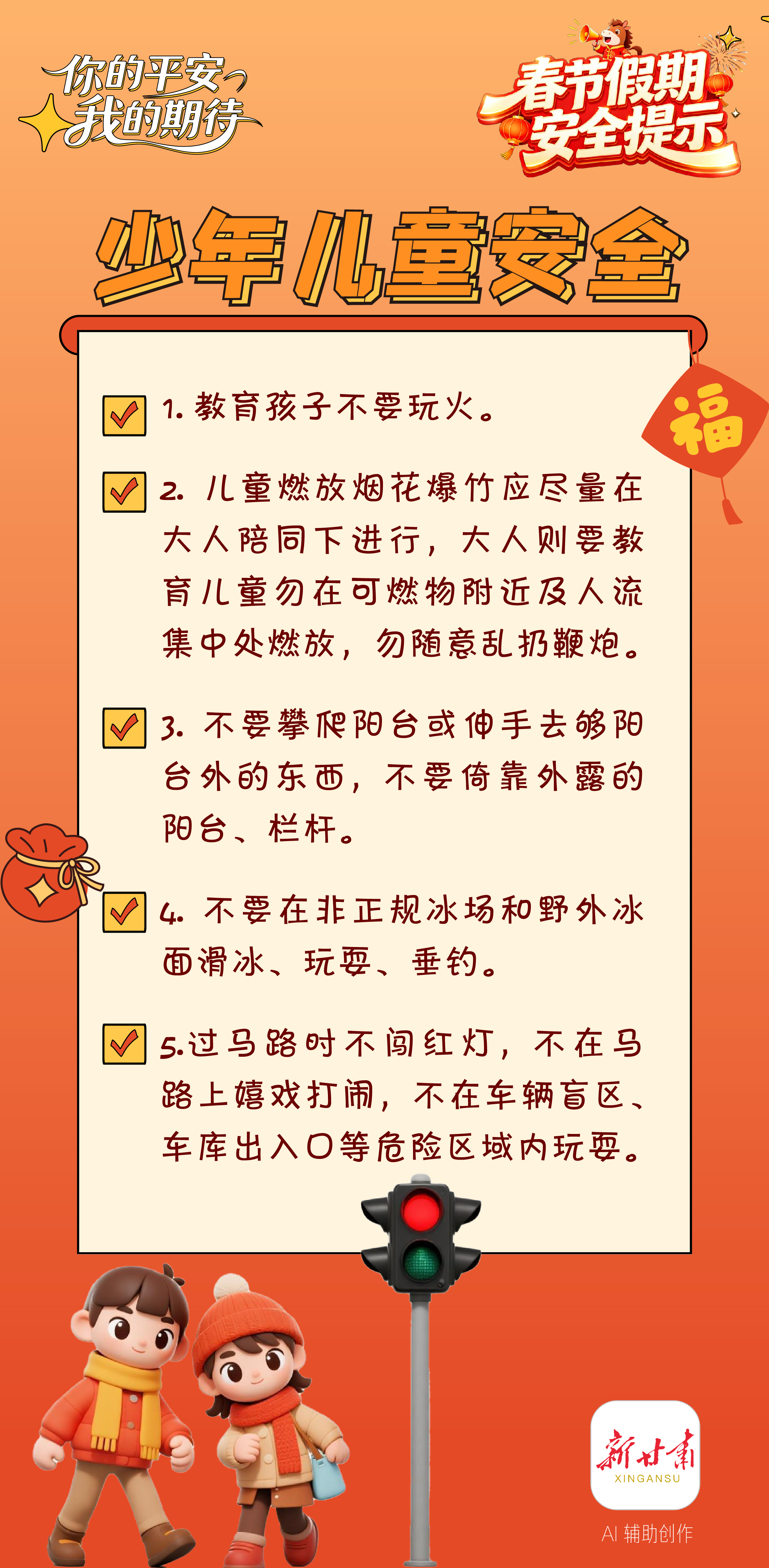 【甘快看·你的平安 我的期待】海报|春节假期安全提示:少年儿童安全