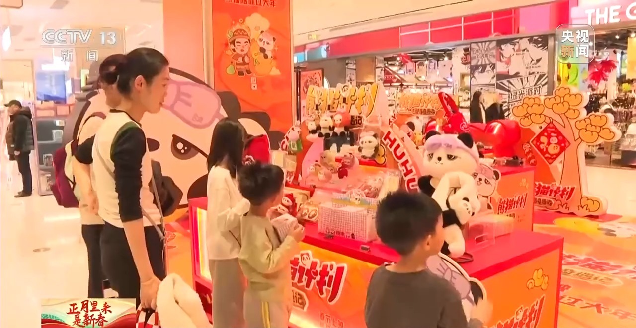 春节档影片热映也给电影衍生品带来了更多销路。在北京市朝阳区一家商场里,《熊猫计划之部落奇遇记》快闪活动吸引了大量市民,憨态可掬的大熊猫和机器熊猫与大小朋友们一起互动。
