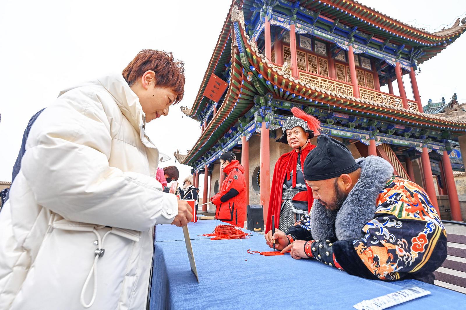 “雄关迎瑞 欢度新春”。春节假期,嘉峪关关城景区组织开展寻宝探秘、关长赐福等多项互动活动,在欢声笑语中为游客送上新春祝福。