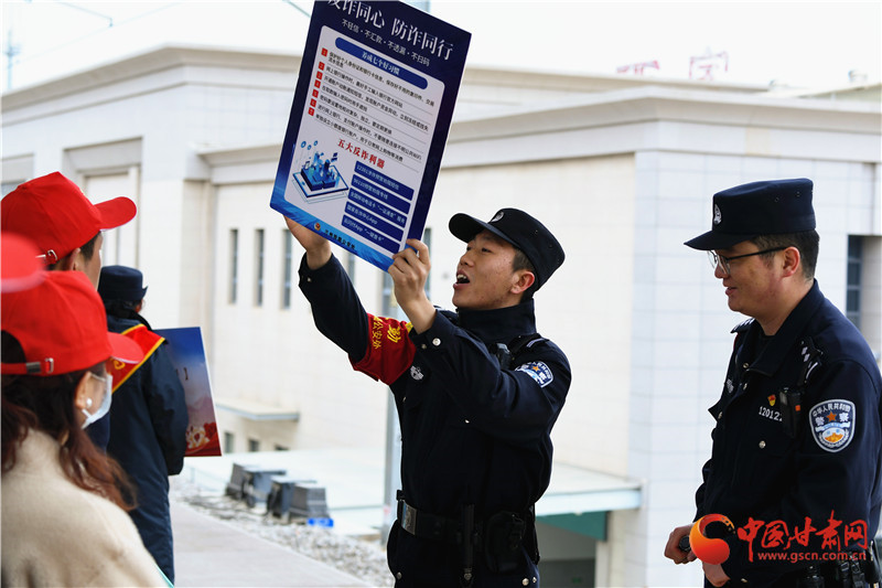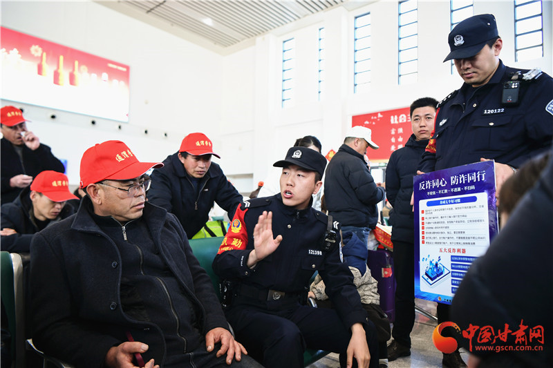 “出门在外,凡是遇到借款、汇款、转账等问题时,一定要核实清楚对方的身份,可以拨打对方的常用号码,或者使用视频聊天仔细询问后再做决定,切不可心急将钱打给对方,防止被诈骗造成经济损失…”定西北站派出所民警李凯在候车大厅向务工返岗人员细细叮嘱着。