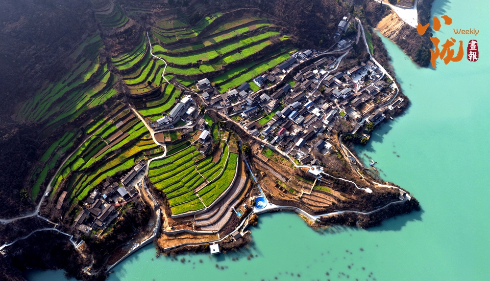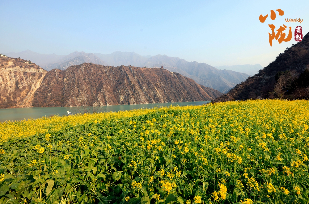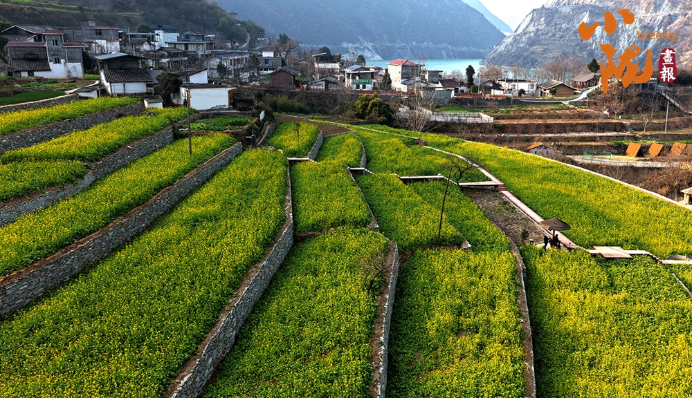 那一丛丛、一簇簇的油菜花,沿着梯田层层叠叠,从江边一直蔓延到半山腰,铺展在青山碧水之间;又像是大地刚刚苏醒时,打翻的调色盘。