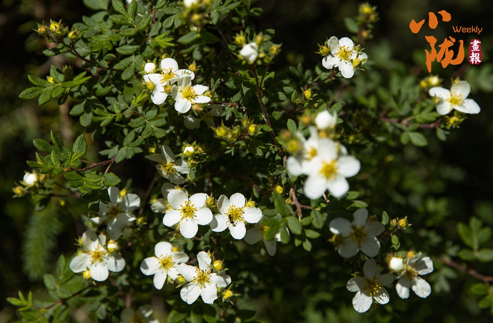 银露梅,属于蔷薇科委陵菜属落叶灌木。它多生长在高海拔的山坡、岩石缝中,叶片羽状分裂,边缘带锯齿,白色小花簇拥开放,花蕊明黄,花期在5-7月,耐寒耐旱,是颇具观赏价值的野生植物。