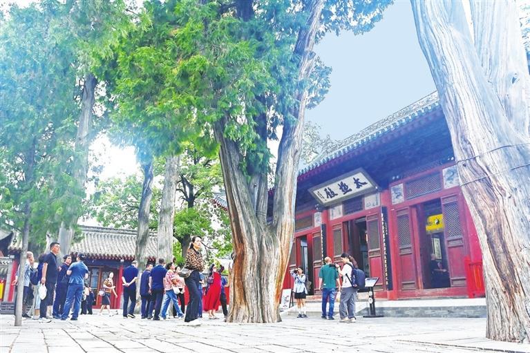 游人在伏羲庙参观、了解伏羲文化。