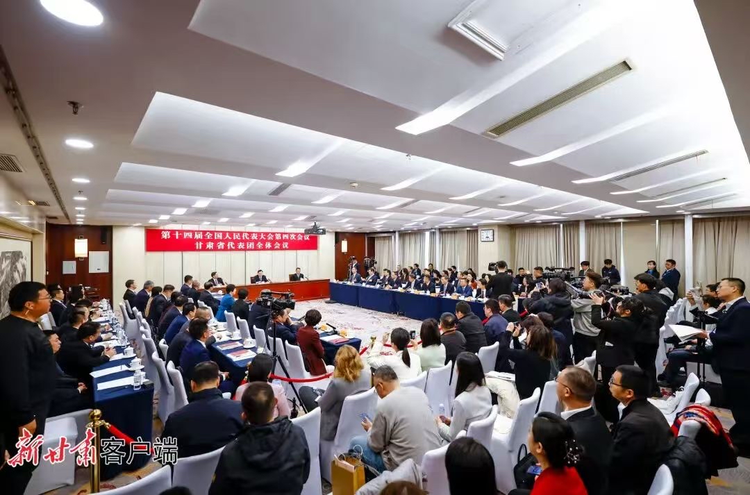 “今天上午来到甘肃代表团,我就拿到了这份介绍甘肃经济社会发展的材料,里面有许多干货。从中可以看到,‘十四五’期间,甘肃地区生产总值连跨4个千亿台阶,经济增速也是连续16个季度高于全国。我想请问一下胡昌升代表,‘十四五’期间,这样的成绩对于甘肃这样的西北内陆省份可以说是殊为不易,那‘十五五’时期,甘肃要怎样干?会如何争先进位、跳起摸高呢?”进入记者提问环节后,中央广播电视总台记者率先提出问题。