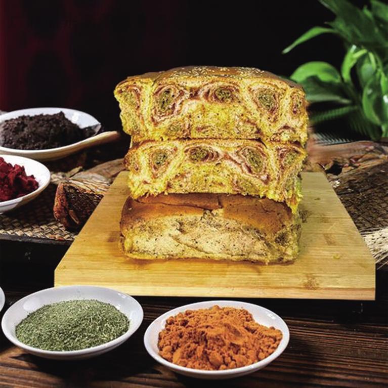 当清晨的第一缕阳光洒向永登,丁娃烧饼的工厂里已是麦香浮动。老师傅们沿用祖辈传下的老酵面发酵法,将醒发柔软的面团擀成薄如蝉翼的面皮,先刷一层澄亮的菜籽油,再均匀涂抹金黄的姜黄粉、翠绿的香豆粉,最后铺上那抹诱人的殷红——手工熬制的苦水玫瑰酱。“这就像给饼穿上彩虹衣。”一位老师傅笑着说。面皮被小心翼翼卷起、压成饼坯,卷进去的不仅是玫瑰酱,更是永登的山川风物与四季滋味。