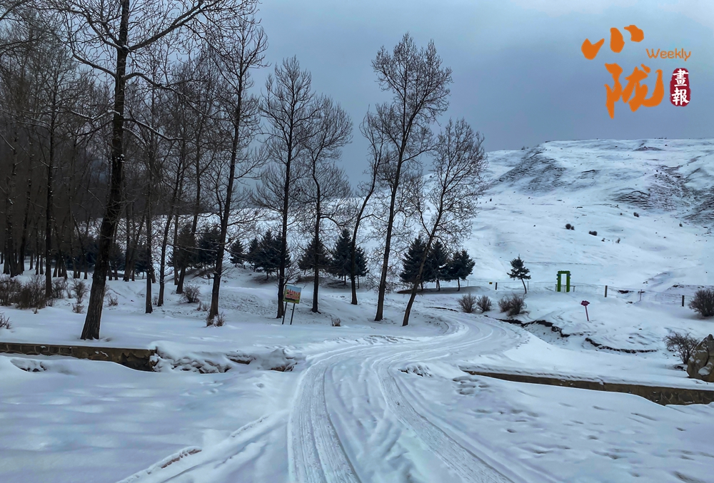薄雪轻覆山野,光秃的枝桠在冷风里勾勒出清瘦的线条。一条蜿蜒的雪径向深处延伸,车辙浅浅地刻在雪地上,像大地写下的两行细语,静静通向山野更深的寂静。