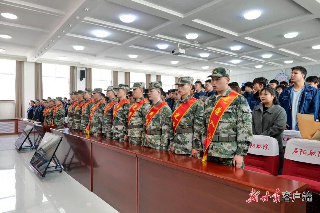 酒泉市肃州区欢送现场,60余名新兵精神抖擞、士气昂扬,身着崭新的迷彩军装,胸戴大红花,身姿挺拔、目光坚定,脸上洋溢着青春朝气与报国豪情。金昌市金川区20余名优秀青年郑重接过入伍通知书,“光荣之家”的牌匾,照亮他们无悔的报国征程。