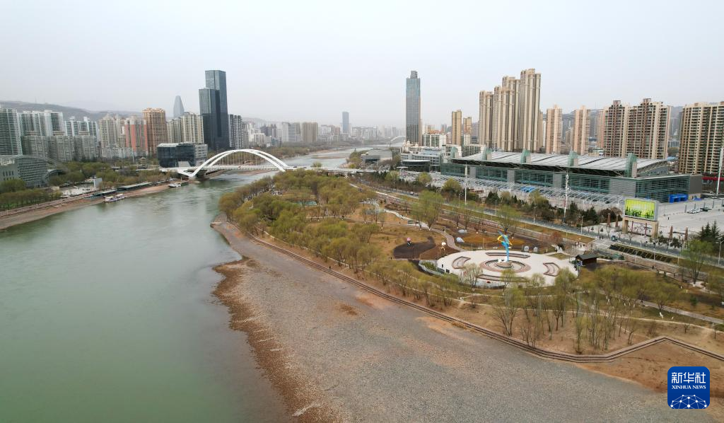 这是位于兰州市城关区黄河岸边的马拉松公园(无人机照片,3月18日摄)。新华社记者 陈斌 摄