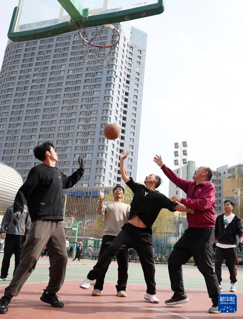 3月17日,市民在兰州市体育公园的篮球场打篮球。新华社记者 陈斌 摄