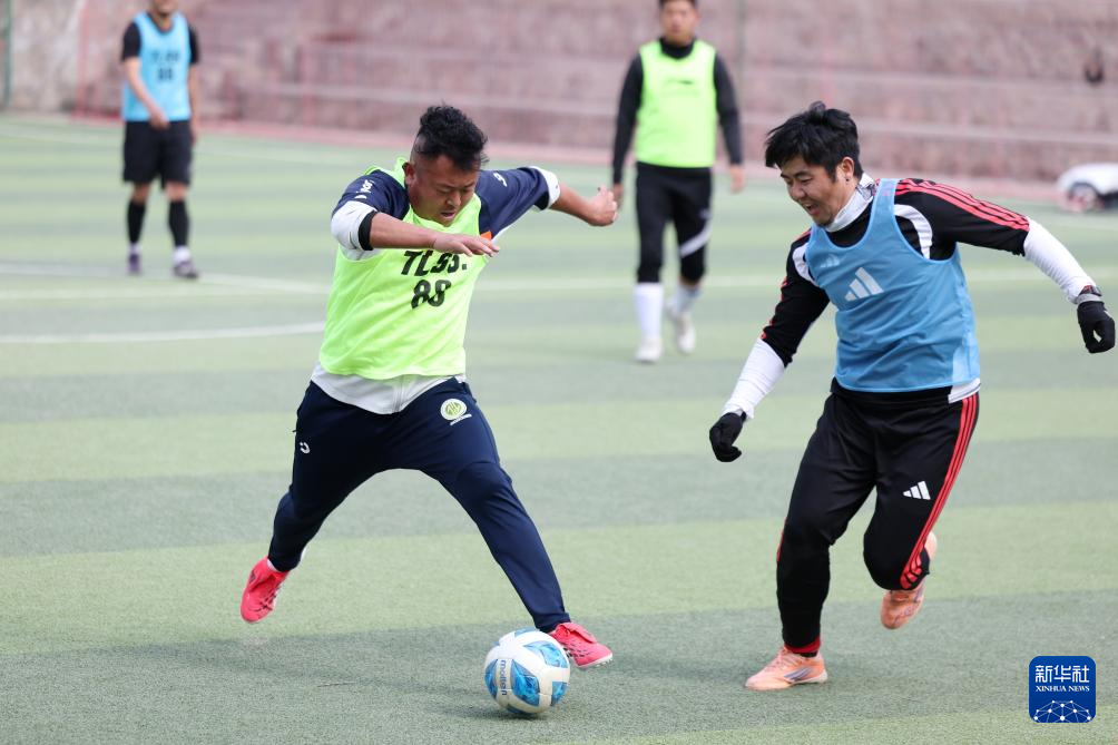 3月17日,足球爱好者在兰州市体育公园的足球场踢球。新华社记者 陈斌 摄