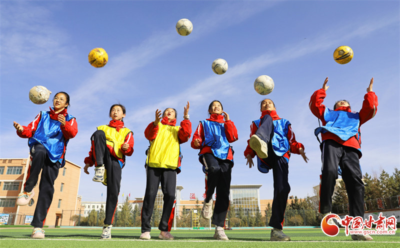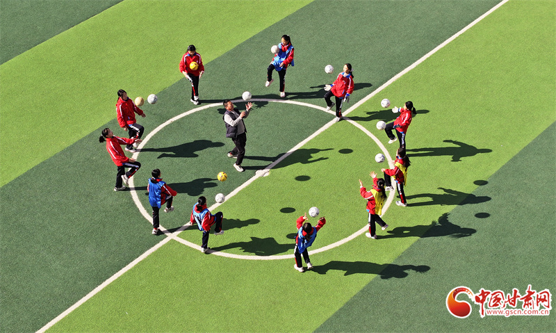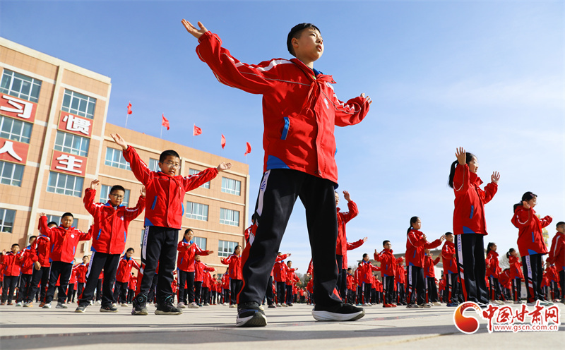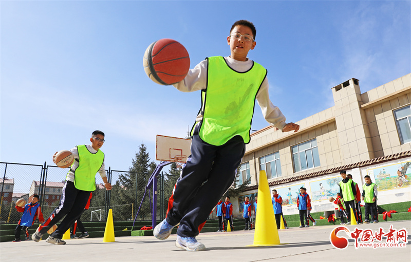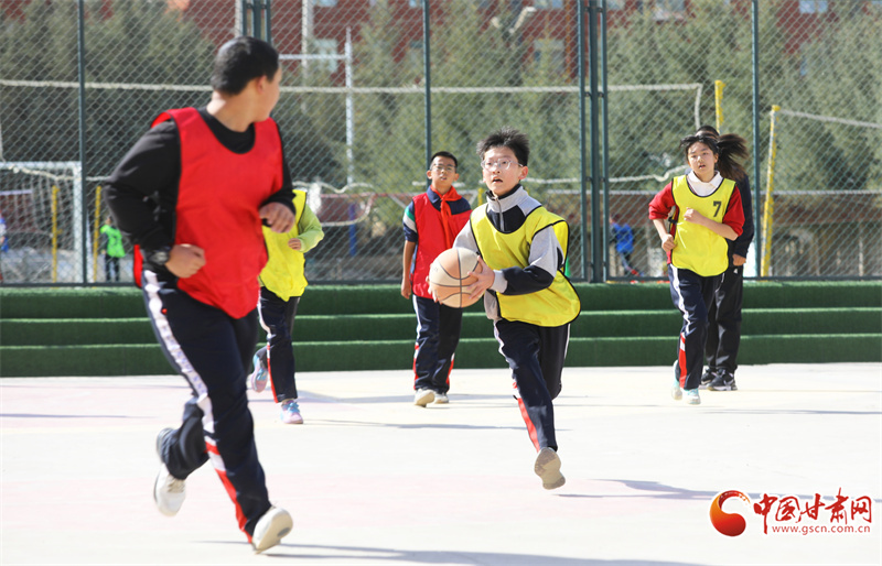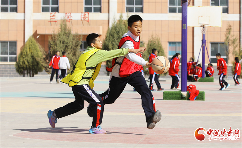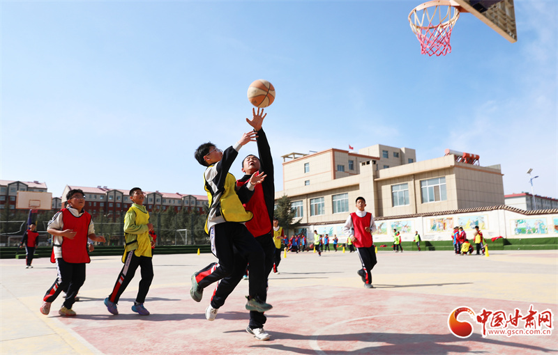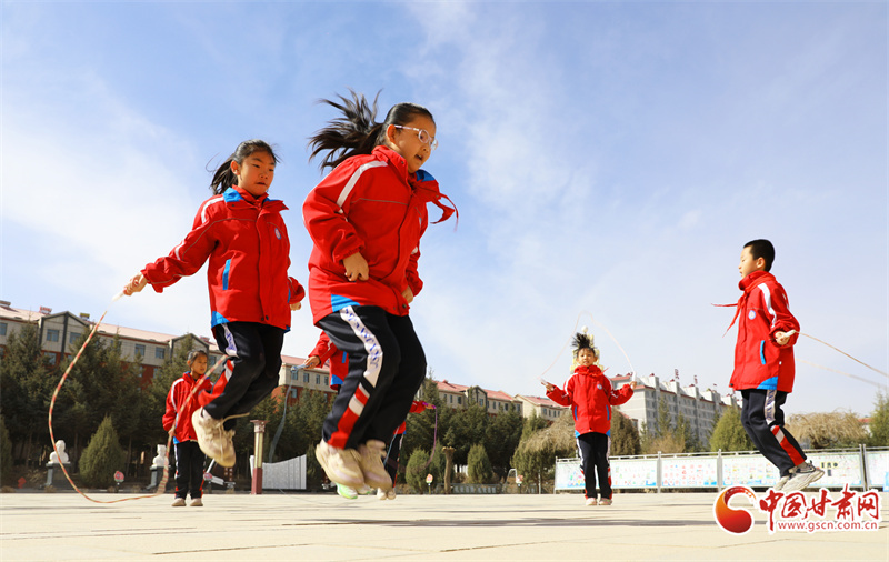3月25日,在民乐县金山小学,学生们在课间开展丰富多彩的文体活动。