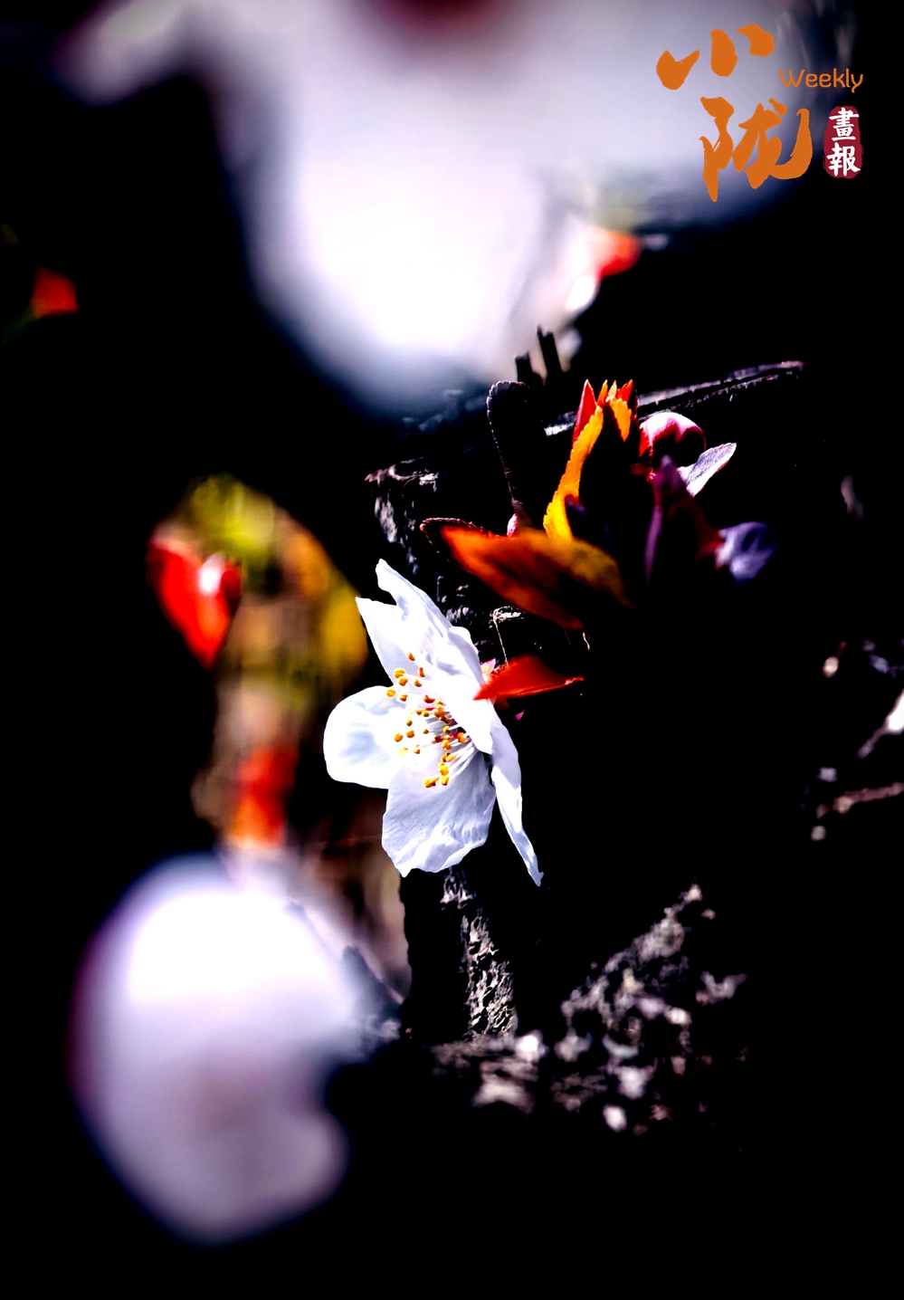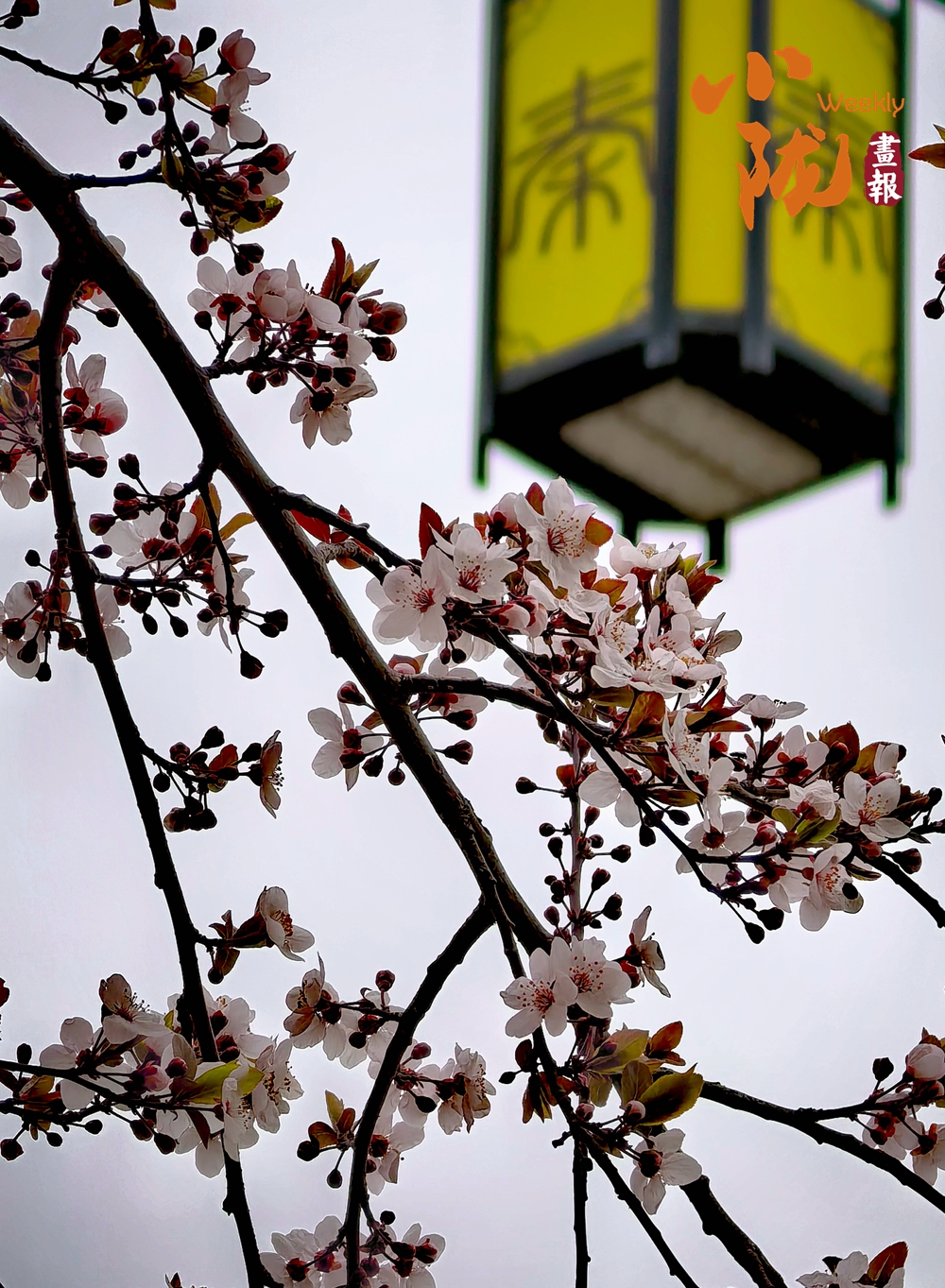 紫叶李花开满枝,白中带粉的花瓣簇拥在枝头,搭配着深褐枝桠与古色古香的街灯,将春日的柔美与街巷的烟火气悄然融合,尽显别样的春日情韵。