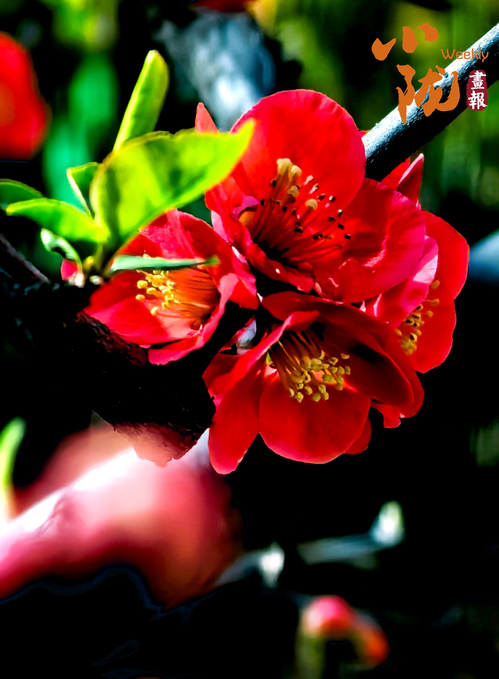 贴梗海棠花瓣紧紧贴在枝头,嫩黄的花蕊在暖阳下格外醒目,新绿的叶片衬着灼灼花色,晕染出浓烈又鲜活的春日生机。