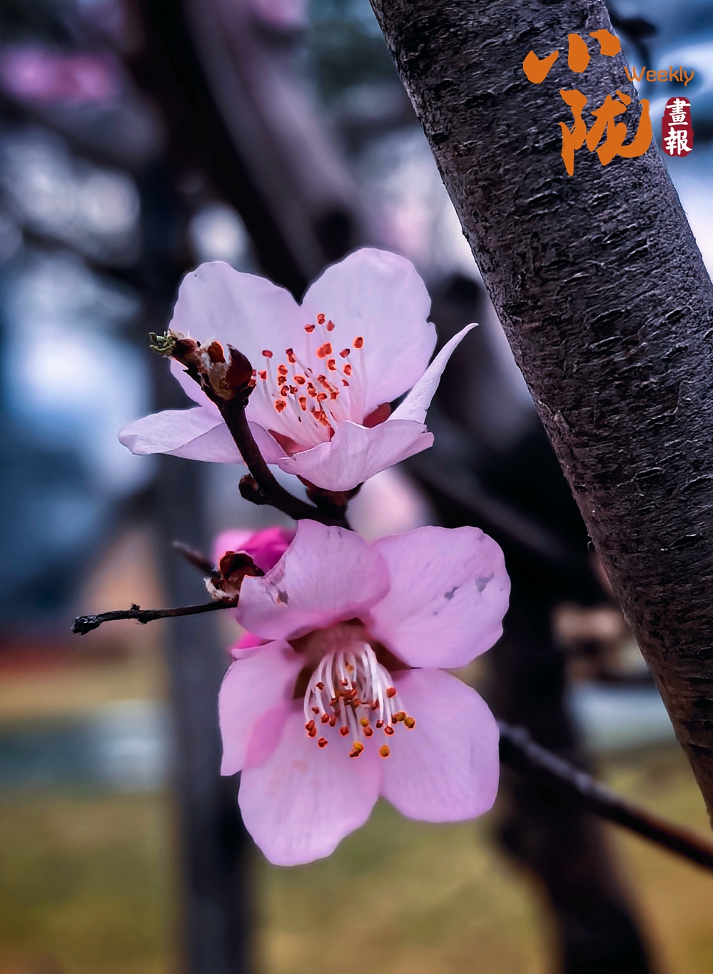 粉艳桃花缀满枝头,柔粉的花瓣舒展着春日的娇柔,细密的花蕊攒着春日的灵动,虬曲枝桠衬着朦胧背景,将春色渲染得格外动人。