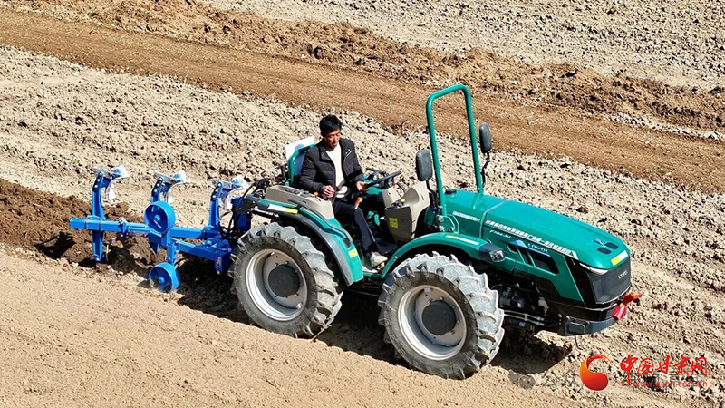 漳县新寺镇青瓦寺村示范田农机耕作现场