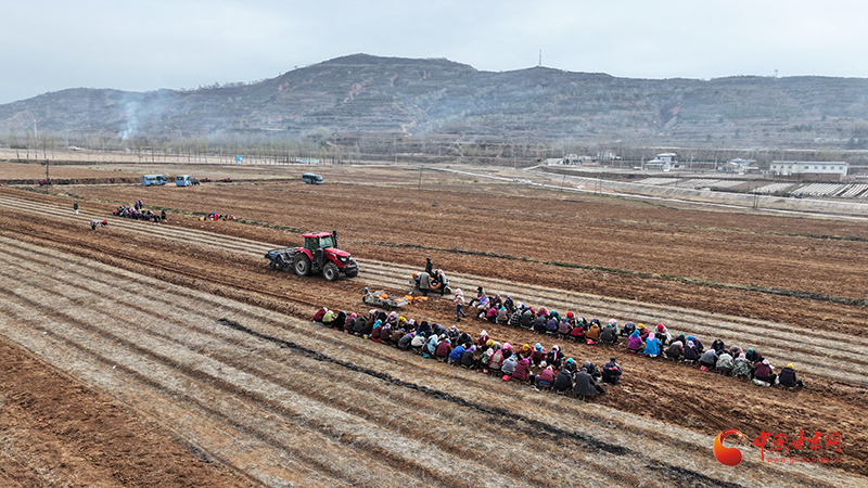 这几天,庄浪县通化镇的中药材育苗基地里忙个不停。趁着天气晴好,农机手驾驶挖苗机来回穿梭开挖党参药苗,工人分组劳作,沿着田垄捡拾药苗。随着机械轰鸣,一根根党参苗破土而出,工人们跟机捡拾,一派繁忙的春日劳作景象。