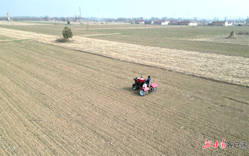西峰区肖金镇双桐村晚播小麦镇压作业。新甘肃·甘肃日报通讯员 盘小美摄