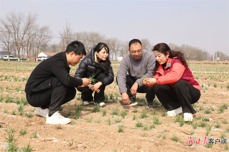 西峰区农技人员与种植户查看苗情墒情。新甘肃·甘肃日报通讯员 盘小美摄