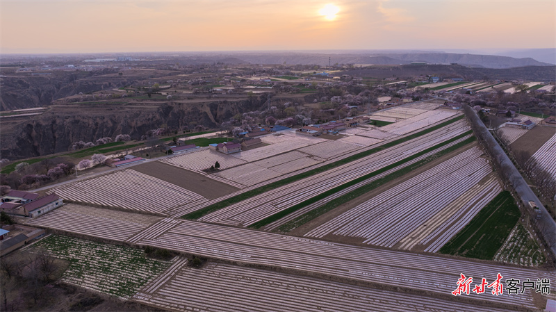 镇原县平泉镇麻王村已基本完成覆膜作业。新甘肃·甘肃日报通讯员 陈飞摄