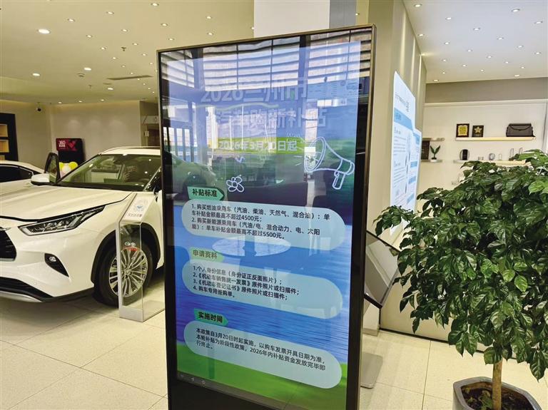 “本来还在犹豫,听说补贴名额有限,怕错过了,就赶紧下单了。”近日,在广汽丰田兰州禾丰大沙坪店,市民陈先生提走了一辆心仪已久的新车。自3月20日兰州市2026年第一批汽车购新补贴活动启动以来,这样的场景在兰州多家汽车销售门店内频频上演。截至4月1日,此次补贴活动已带动汽车销售1000台左右,拉动消费1.5亿元以上,惠及1000多名消费者,为我市经济增长注入了强劲动力。