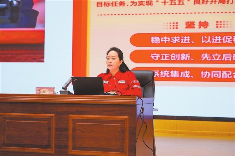 从井站到机关,从工人到干部,张红玲的宣讲既有实践温度又有政治高度。在采油二厂厂部机关等地,她紧扣“十五五”开局之年部署,聚焦能源安全、民生保障、绿色低碳、基层治理四大方向,将国家战略与长庆油田发展、地方群众需求紧密结合,重点解读了国家支持油气勘探开发等方面的宏观政策。