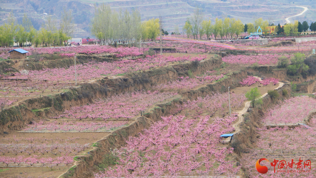 4月8日上午,2026年甘肃秦安桃花会开园仪式暨全国四季村晚春季示范展示活动在刘坪镇秦洼桃花堡景区举行。万亩桃林竞相绽放,四方宾朋齐聚花海,秦安县一年一度的桃花盛会正式启幕。