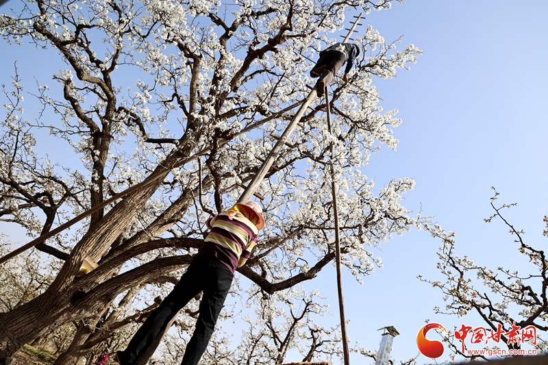 中国甘肃网4月9日讯(西北角·中国甘肃网记者 余守萱 实习生 赵晓彤)春赏梨花胜雪,秋品硕果飘香。9日上午,记者跟随“梨韵什川·美丽皋兰”梨花季特色文旅活动走进皋兰县什川镇上车村。据介绍,这片拥有万亩面积、近万株百年以上古梨树的“世界第一古梨园”,正悄然发生着一场传统与现代交织的奇妙变化。在这里,一部手机就能解锁梨园的前世今生,一根长竿则承载着几百年不衰的农耕智慧。