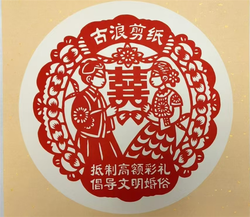 武威古浪宣传文明婚俗低价彩礼的剪纸作品