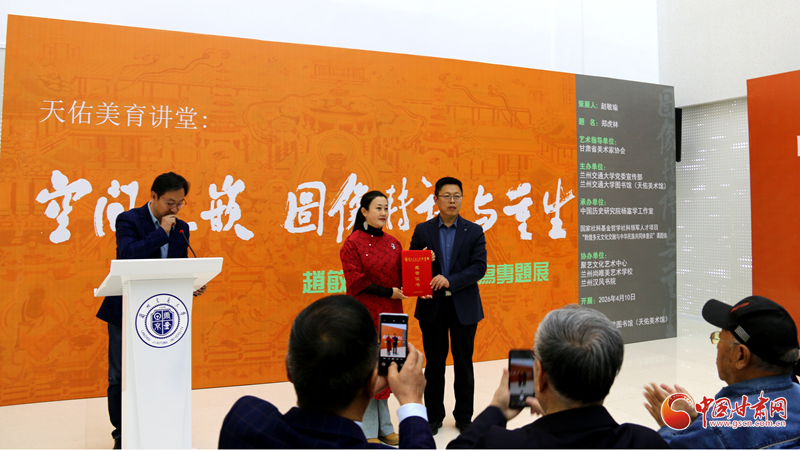 中国甘肃网4月10日讯(西北角·中国甘肃网记者 赵满同)4月10日上午,“天佑美育讲堂:空间互嵌 图像转译与重生——赵敏瑜敦煌壁画摹写专题展”在兰州交通大学图书馆(天佑美术馆)开展。