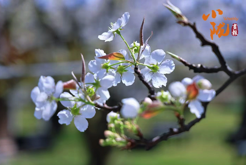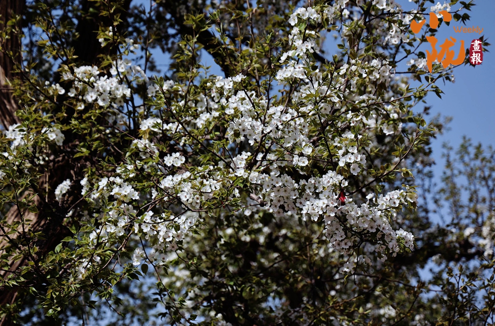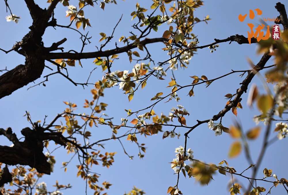 枝干苍劲奔放,梨花素洁如洗,在蓝天的映照下,如云似雪。满园春色扑面而来,那是岁月深处积蓄后迸发的盎然生机。梨花宛若积雪挂满枝条,嫩蕊微微颤动,苍劲虬枝与柔美花朵对比鲜明。春意从树下漫向天边,正是春日最鲜活的烂漫时光。