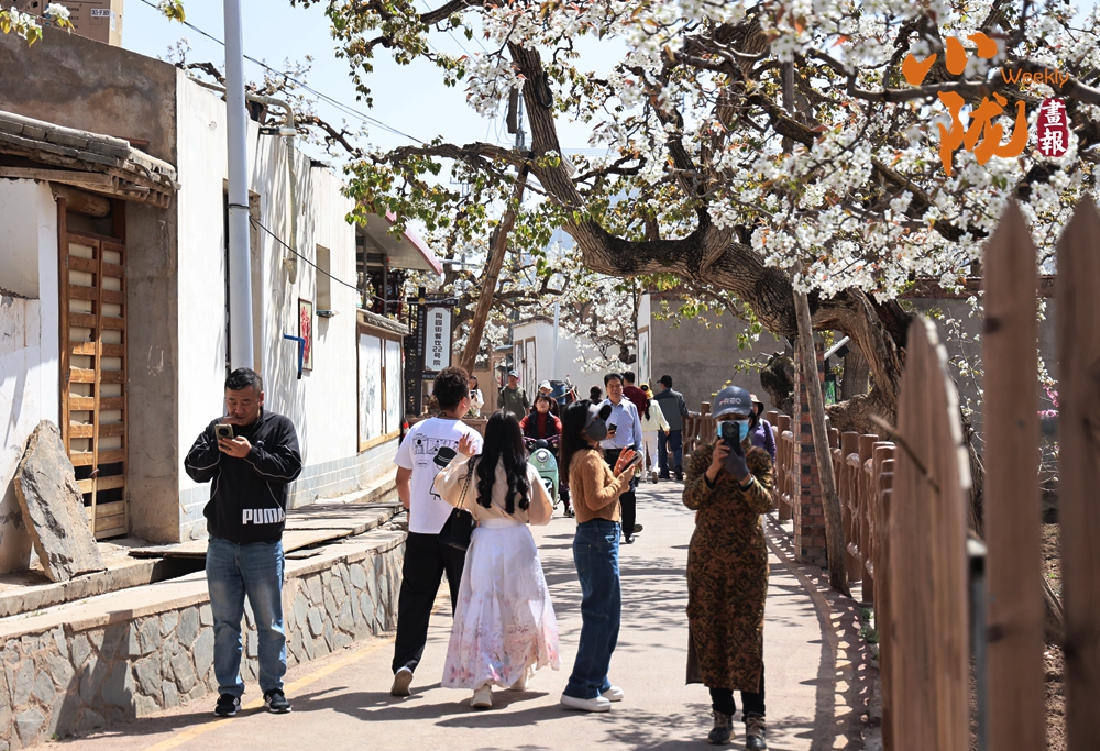 春风拂过什川古梨园,梨花漫枝如雪。不少游客慕名前来打卡赏花,漫步花林间拍照留影,在百年古树下定格春日美好瞬间。