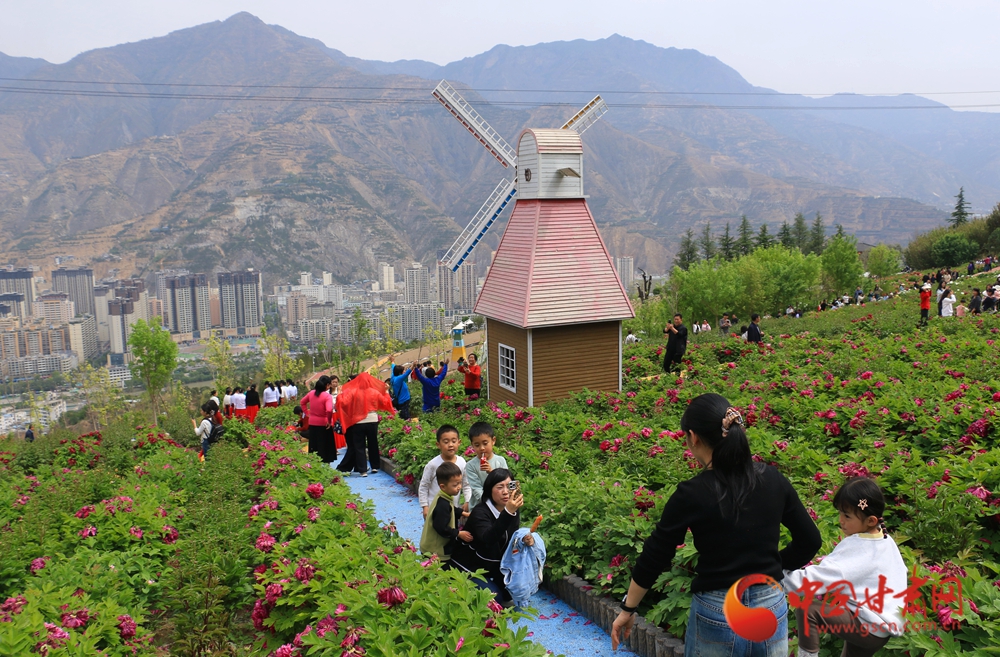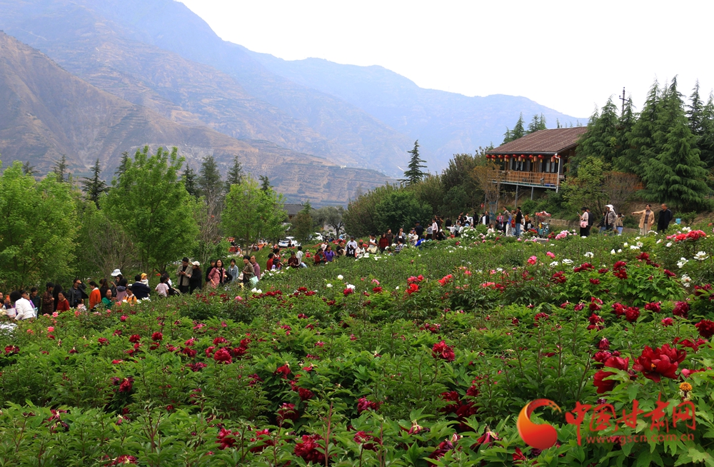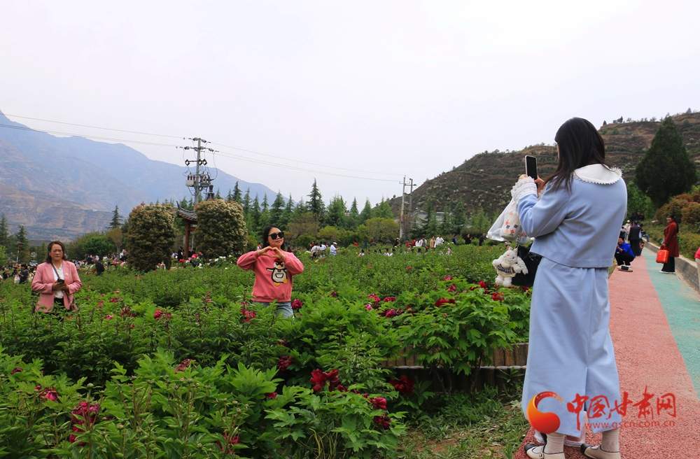 4月12日,陇南市武都区南山植物园的各色牡丹竞相开放,吸引周边市县游客及当地众多市民在牡丹园赏花观景,拍照游玩,享受春日美好时光。