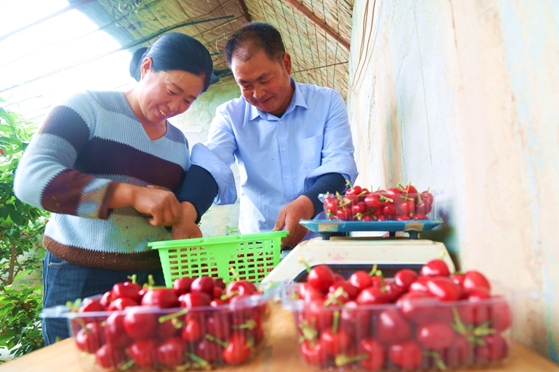 “樱桃预计5月10日结束采摘,同期我们基地的葡萄就开始供大家采摘了。到六一的时候,棚里的葡萄采摘完,露地大拱棚的葡萄又能采摘,一直到9月份都有陆地葡萄可采摘。去年我个人收入在100万元以上,我们合作社因为有露地葡萄、樱桃、梨、桃等多种水果,去年总利润已经突破500万了。”贾宏福说。
