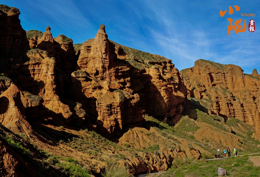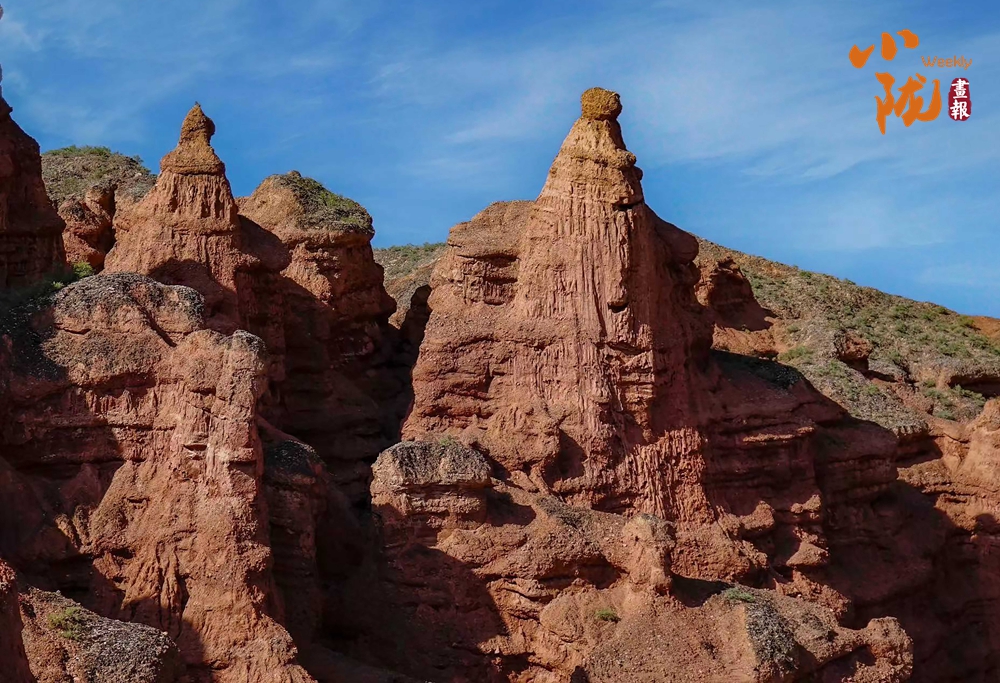 肃南冰沟丹霞以雄险神奇著称,山峰有的如城堡巍然耸立,有的如扇贝层层铺展,有的像沉睡的卧佛,有的像整装待发的舰队。连绵的红色山脊在蓝天映衬下,尽显雄浑壮阔。