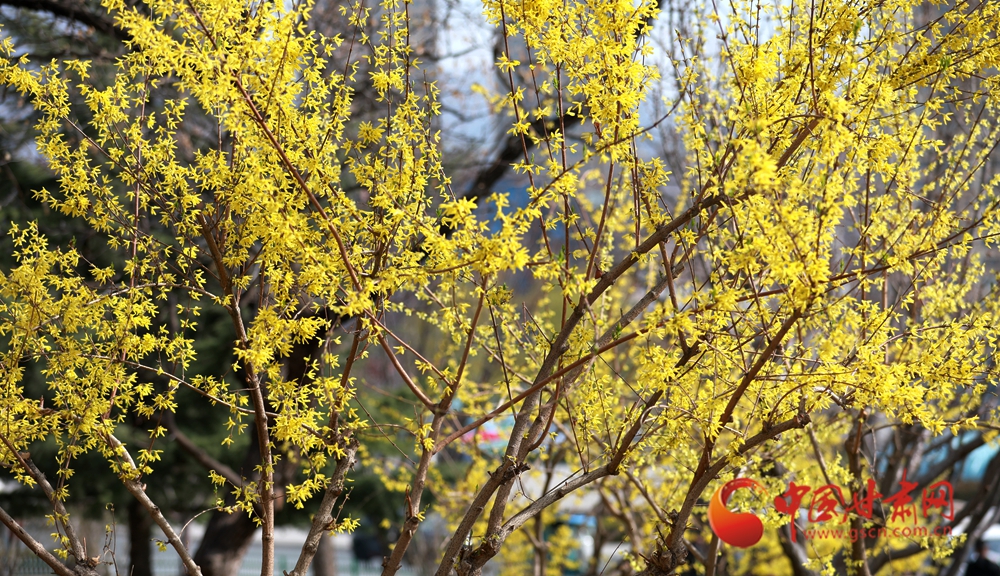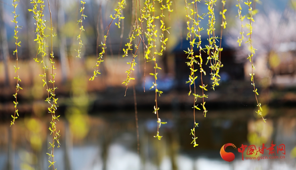 春风吹拂永靖黄河岸畔,两岸花木竞相绽放,水清岸绿,花团锦簇,一派生机盎然景象。
