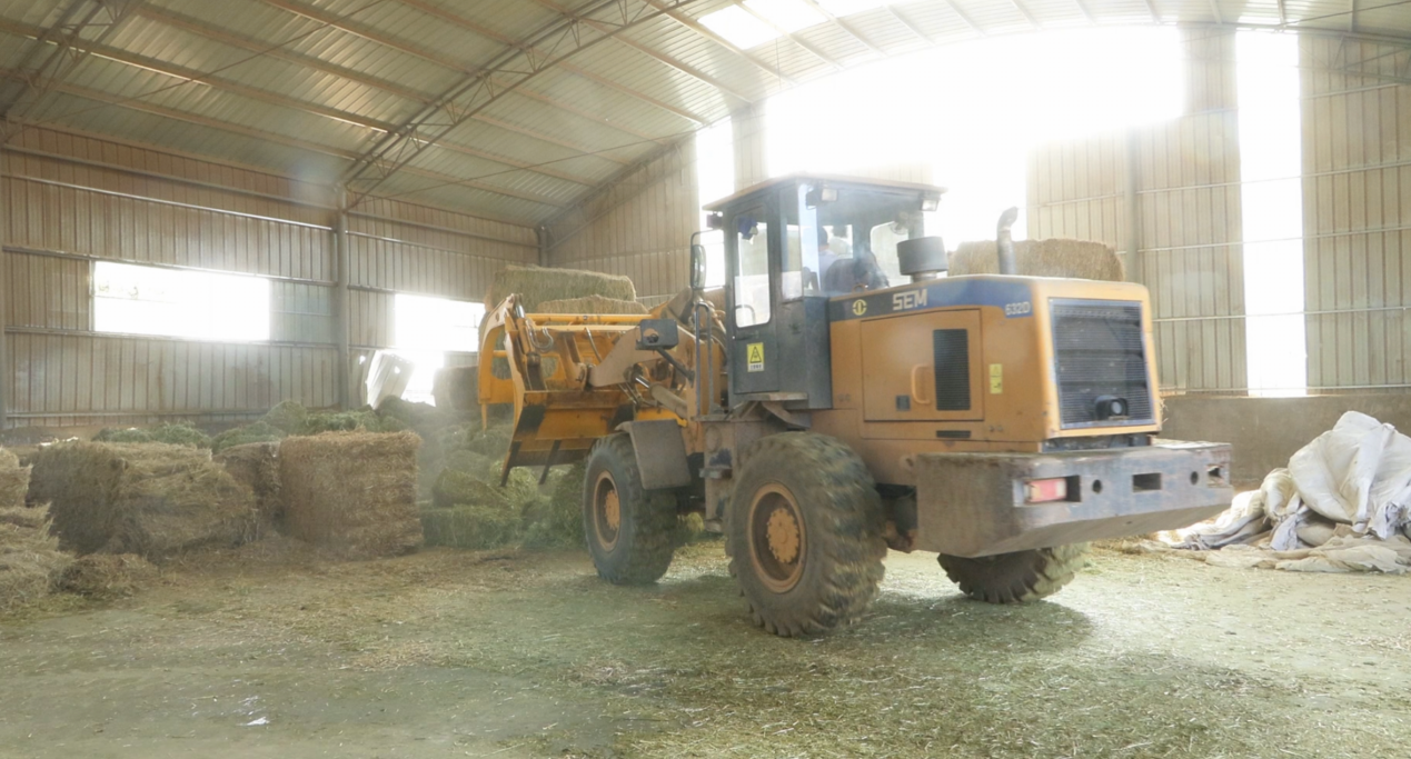 山丹县天马科技有限公司办公室主任 邹成:我们现在大概有上万匹马,我们马的主要用途就是用于孕马的血浆采集,采集完到外地进行进一步的加工,这么多匹马就需要更科学化的管理。我们有十多位饲养员,每一位饲养员都很细心,每人要喂几百匹马。燕麦草的这一方面,首先我们自己每年都要种一部分的燕麦草,自己种自己用。另一部分草的来源就是周边的农户,农户自己种下的燕麦草,我们进行收购,收购回来喂养。我们还有一个颗粒车间,用于草颗粒的加工。