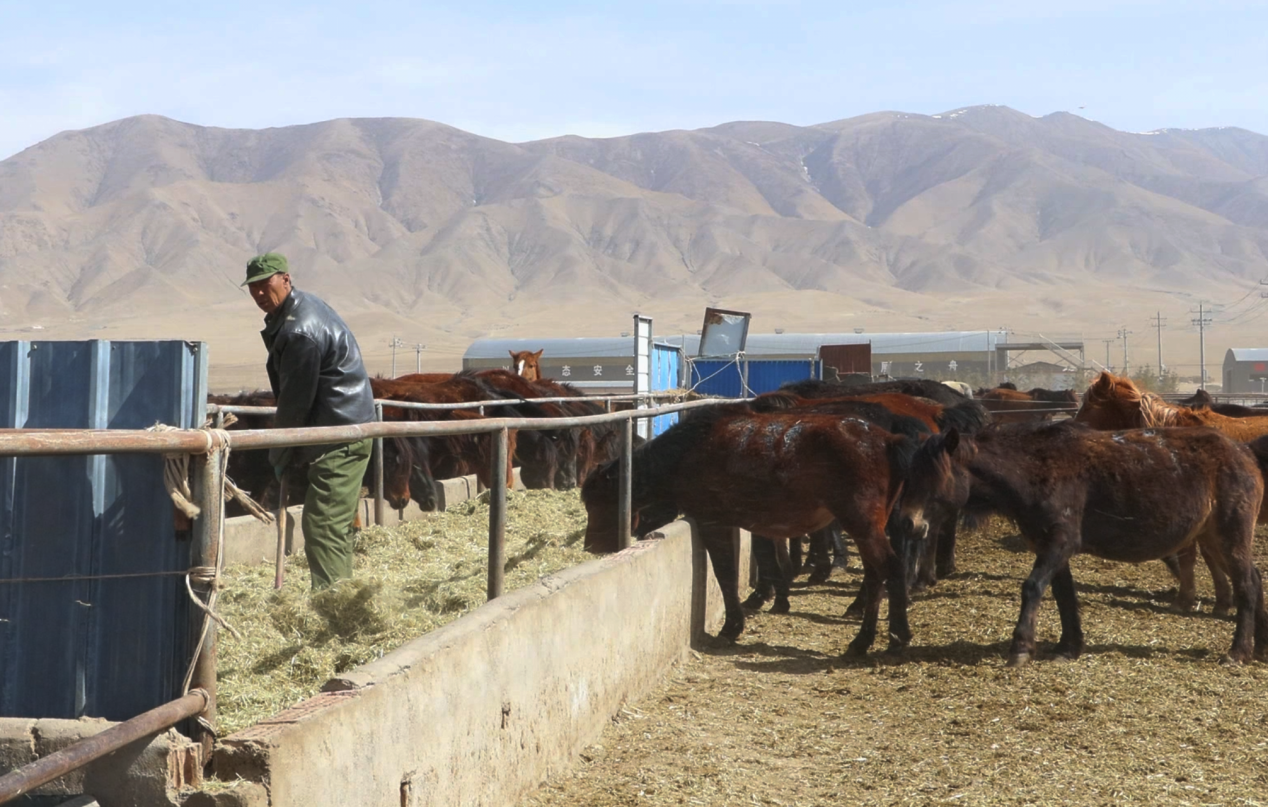 山丹县天马科技有限公司饲养员 郭成芳:已经是第六年了,工作就是喂马,早上五点就起来喂,下午四点,现在养400匹马,一月八千,喂的是燕麦草、玉米、麦子、青稞。