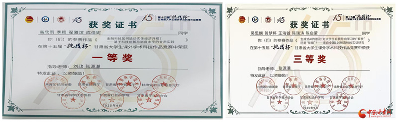 聚焦创新实践能力培养,“思创研”辅导员工作室充分发挥学科竞赛育人功能,积极构建“以赛促学、以赛促创”的培养机制,组织学生参与“挑战杯”“学创杯”等高水平赛事,并取得一系列优异成绩。其中,在兰州财经大学第六届“挑战杯”大学生课外学术科技作品竞赛中斩获一等奖、二等奖,在第十五届“挑战杯”甘肃省大学生课外学术科技作品竞赛中荣获一等奖,在第三届甘肃省大学生节能减排社会实践与科技竞赛中获得三等奖,充分展现了学生扎实的专业素养和良好的创新能力。