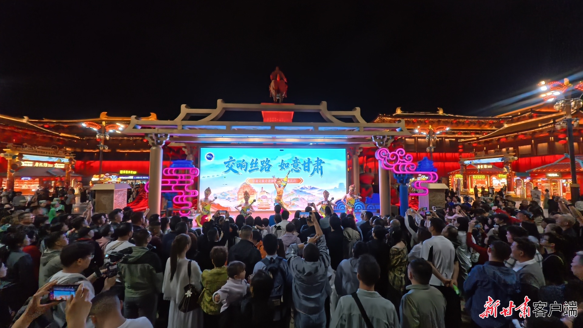 “交响丝路·如意甘肃”快闪路演走进大唐不夜城。(新甘肃·甘肃日报通讯员 王剑飞摄)