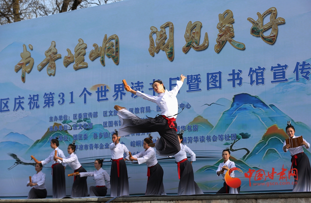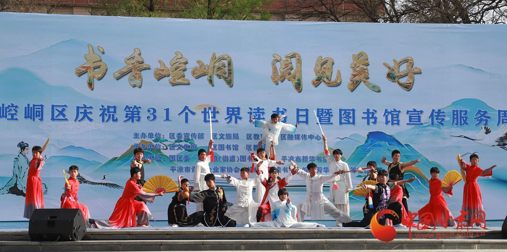 随后,合唱、竹简舞、古典舞、武术、情景吟诵、相声等文艺展演轮番登场。活动现场还设读书成果展、崆峒非遗展、红色书籍展及图书展销区,营造了爱读书、读好书、善读书的浓厚氛围。