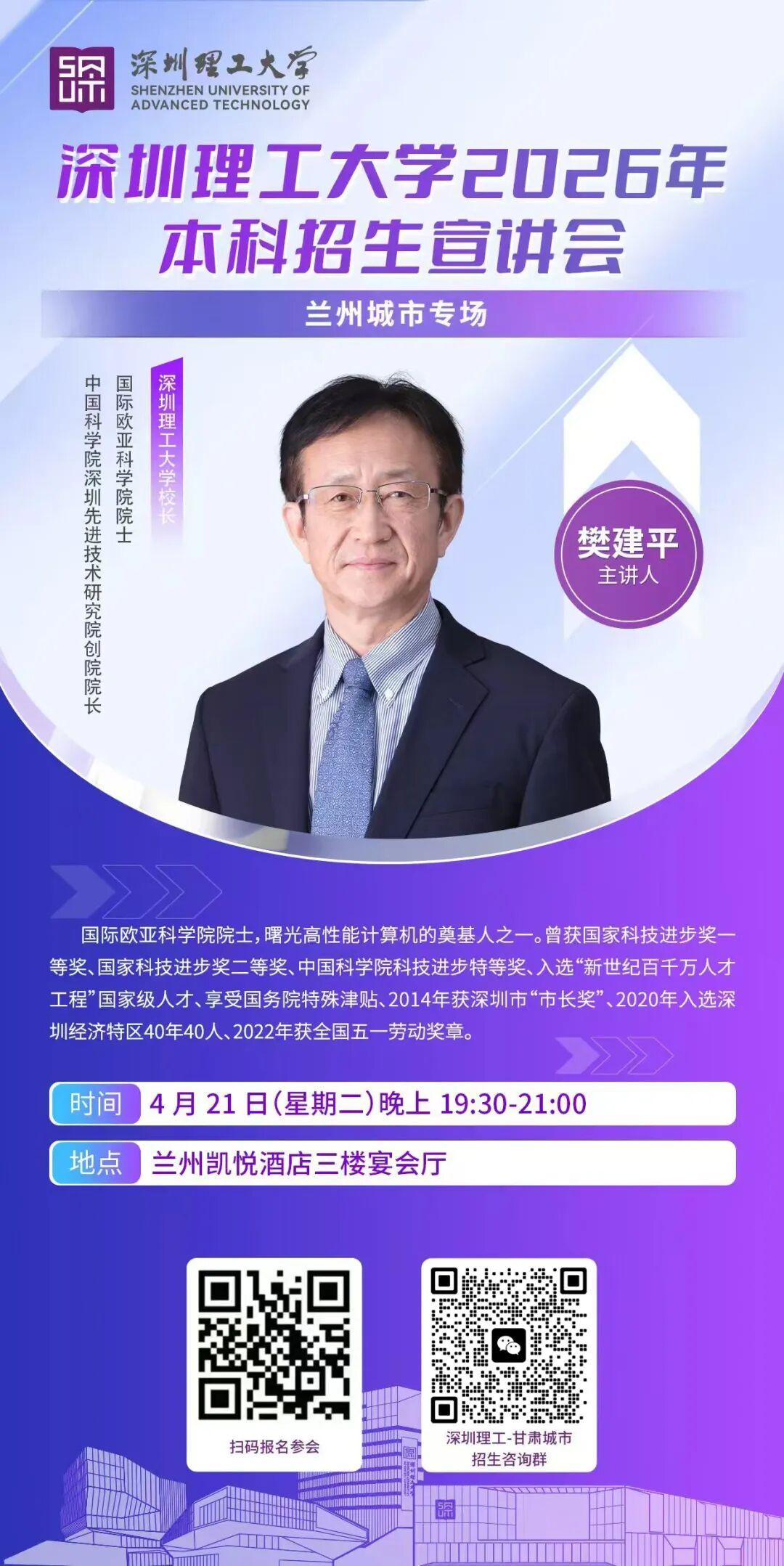4月21日丨深圳理工大学2026年甘肃本科招生宣讲会—兰州城市专场来啦!