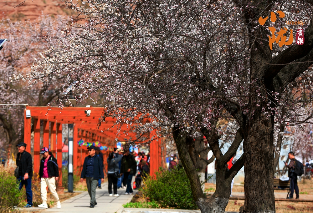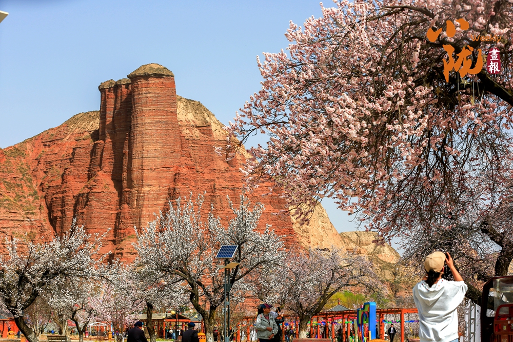 丹霞红岩巍然耸立,粉白杏花簇满枝头,春日的唐汪川,将粗犷与柔美揉成一幅鲜活画卷。游人驻足赏景,镜头定格这山野间的烂漫春光。