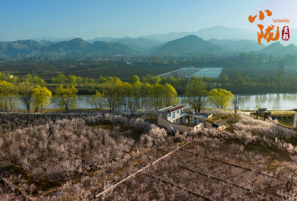漫山遍野的山杏花缀满枝头,粉白花海与错落农舍相映成趣。澄澈河水绕村而过,岸边垂柳抽芽吐绿,远处青山层叠朦胧,这是独属于乡野的烂漫与生机。