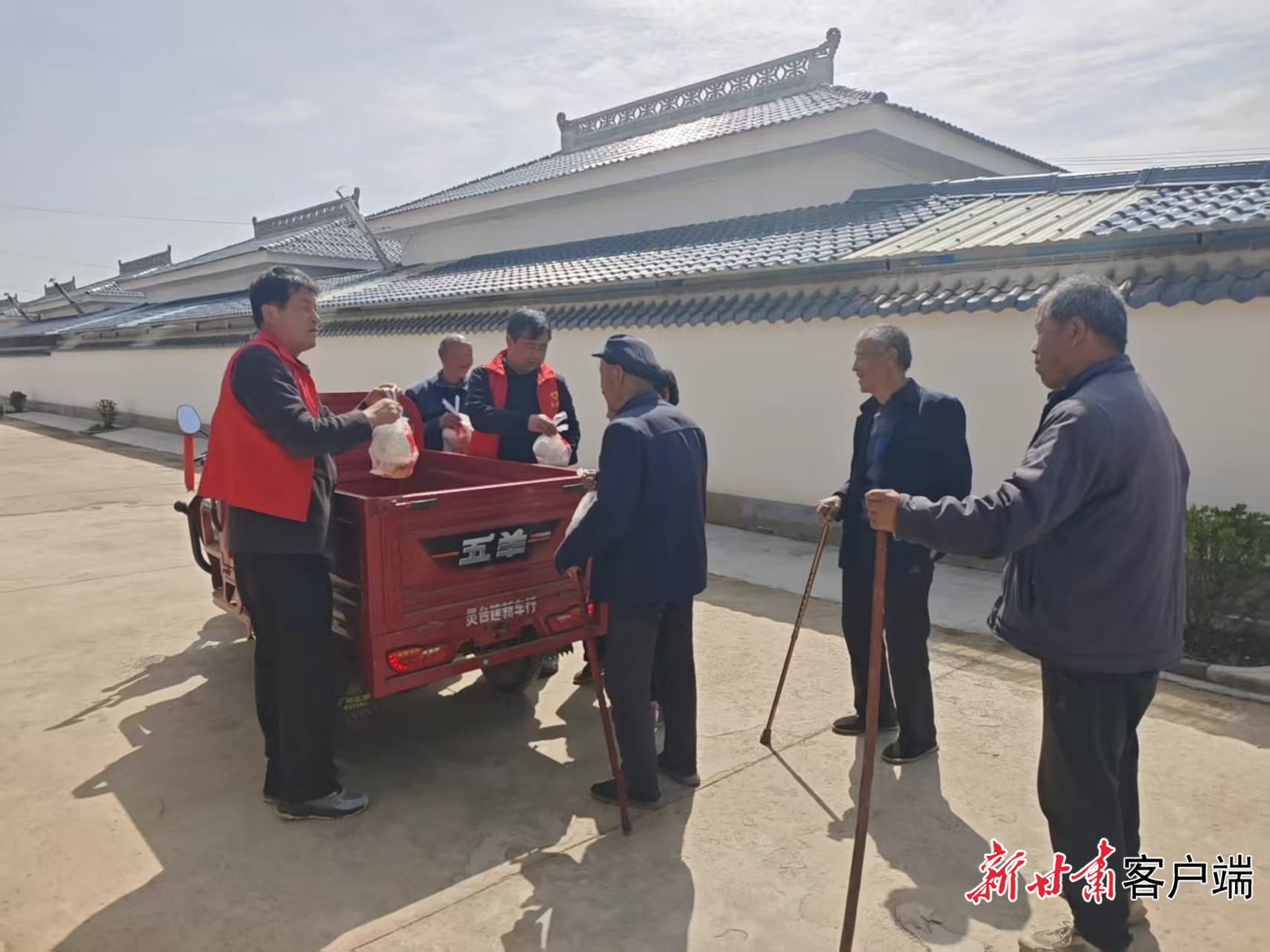 志愿者给老人们送饭。本文图片均由灵台县星火乡政府提供