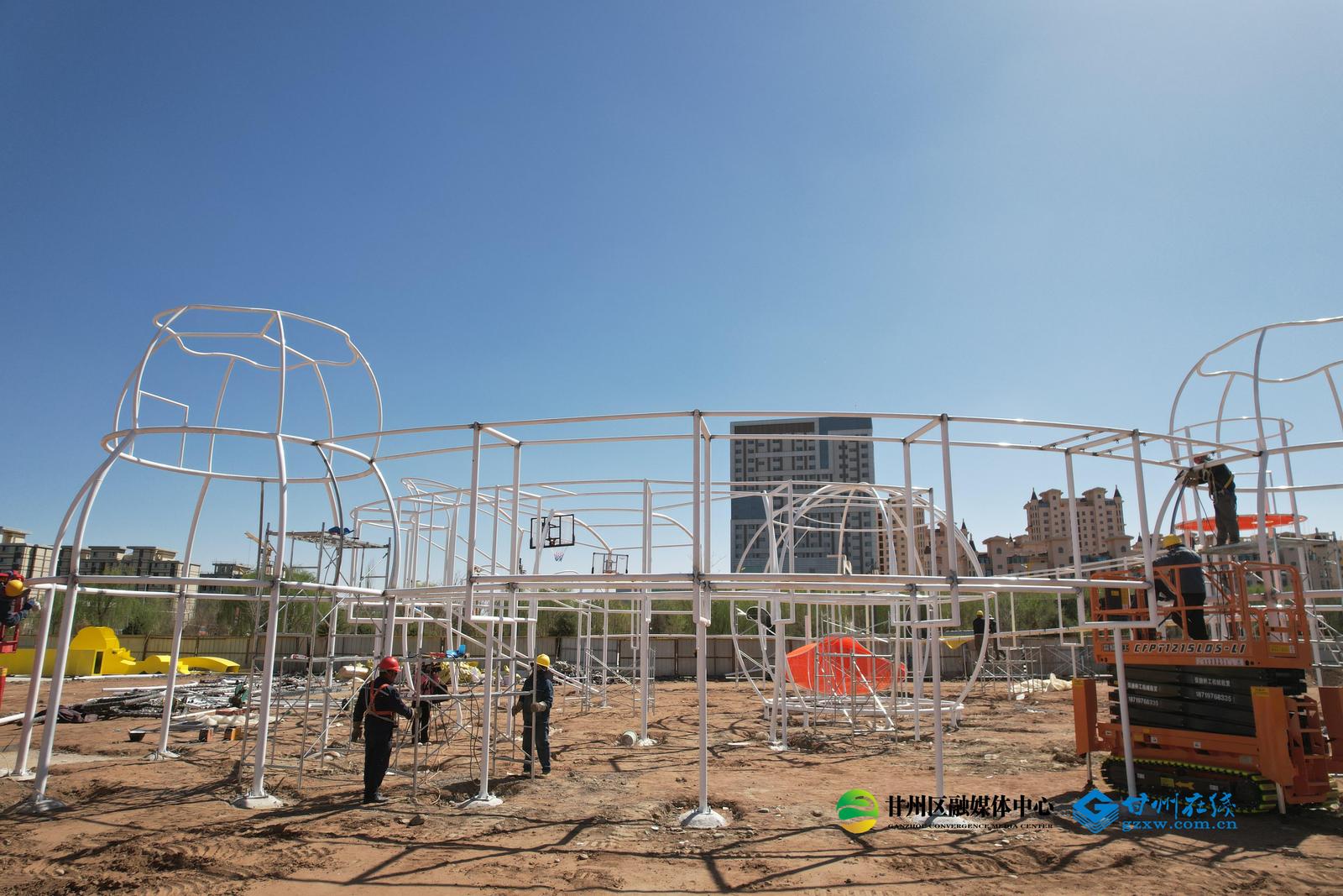 甘州融媒讯 (记者 蒋婷 王凯)为深入推进文旅融合发展,打造区域网红打卡新地标,连日来,甘州区全力推进甘州府城小黄鸭主题游乐园项目建设,一座萌趣十足的亲子乐园正加速从蓝图变为现实。