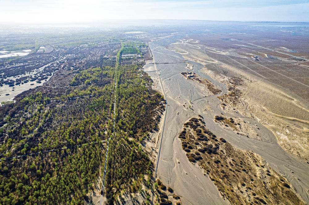 绿洲宝贵,生态脆弱。在我国,河西走廊—塔克拉玛干沙漠边缘阻击战范围涉及新疆、青海、甘肃、内蒙古等多地,沙漠“锁边”范围超6000公里,是西北天然沙漠、戈壁的连片分布地和主要沙尘源区。