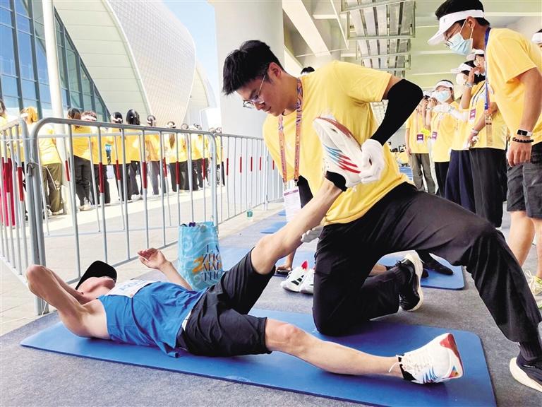 兰精灵·医疗护卫队队员赛后为选手进行拉伸