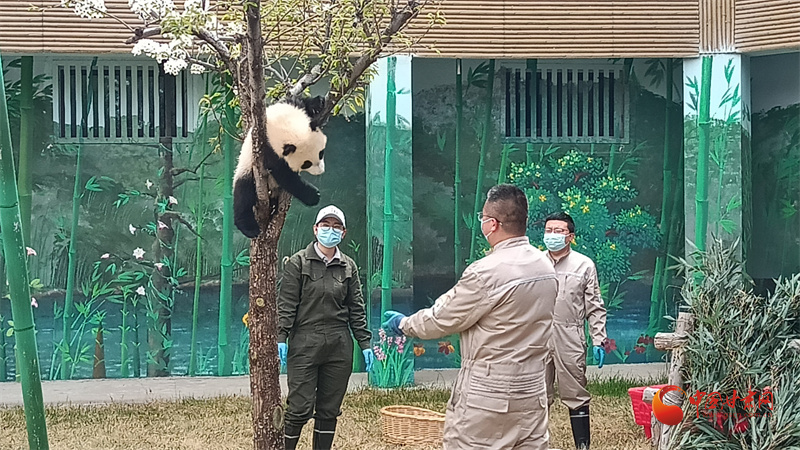 中国甘肃网4月25日讯(西北角·中国甘肃网记者 宋芳科 实习生 赵晓彤)万众期待中,甘肃本土诞生的首只人工圈养大熊猫幼仔“曼兰崽”于4月25日正式独立对外展示,与广大市民游客见面。这一时刻,标志着甘肃省大熊猫人工繁育工作实现里程碑式突破,也搭建起公众了解国宝、关注生态保护的重要桥梁,更是普及野生动物保护知识、传递生态保护理念的科普窗口,让更多人感受西北大地孕育的国宝温情与生态之美。