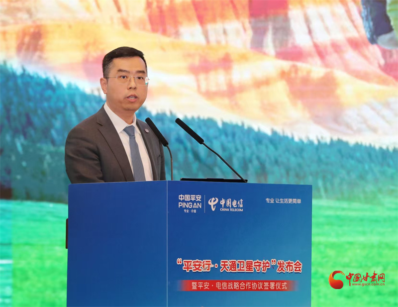 中国电信股份有限公司代表、中国电信股份有限公司甘肃分公司党委书记、总经理杨岭才在致辞中表示,随着全域文旅和户外出行不断发展,全民出行安全保障已成民生治理重要课题。中国电信坚守服务网络强国、数字中国建设与网信安全的使命。针对出行需求升级与安全保障不足的现状,电信甘肃公司与平安产险甘肃分公司跨界融合,实现从事后理赔向事前预防、全程守护转变。依托天通一号卫星系统,产品可脱离地面基站,在深山戈壁等偏远区域实现一键呼救、精准定位,联动全球救援网络打通生命救援最后一公里。此次签约是双方深度合作新起点,未来将拓展多领域布局,打造合作标杆,以央企责任助力平安中国建设。